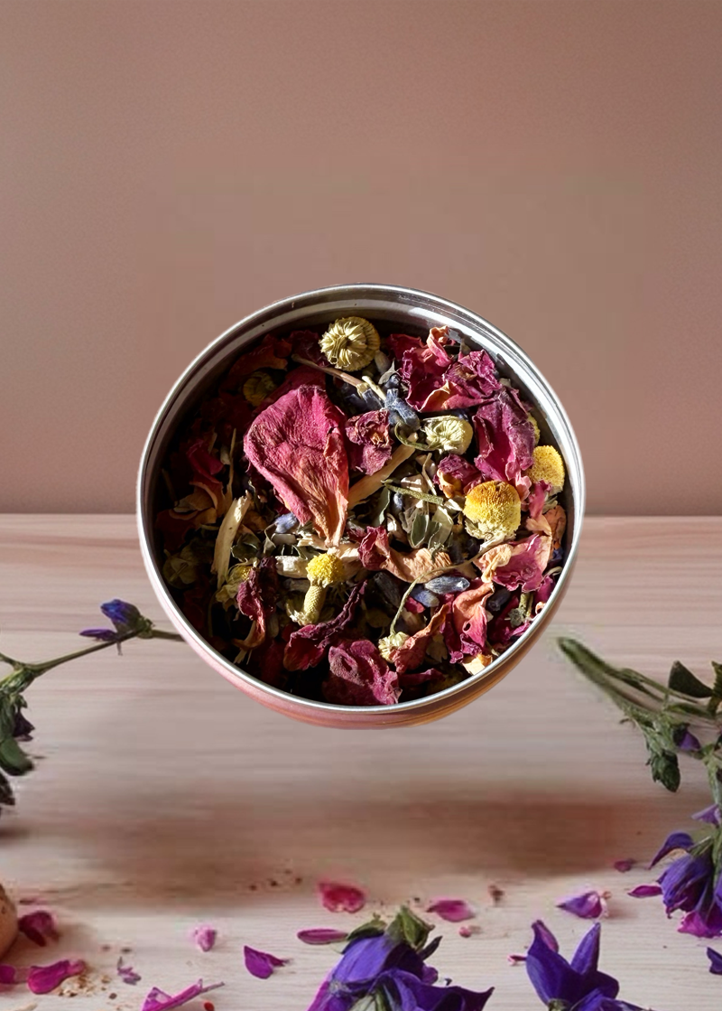 • Rose Petals: Adds a gentle calming effect and a floral aroma.